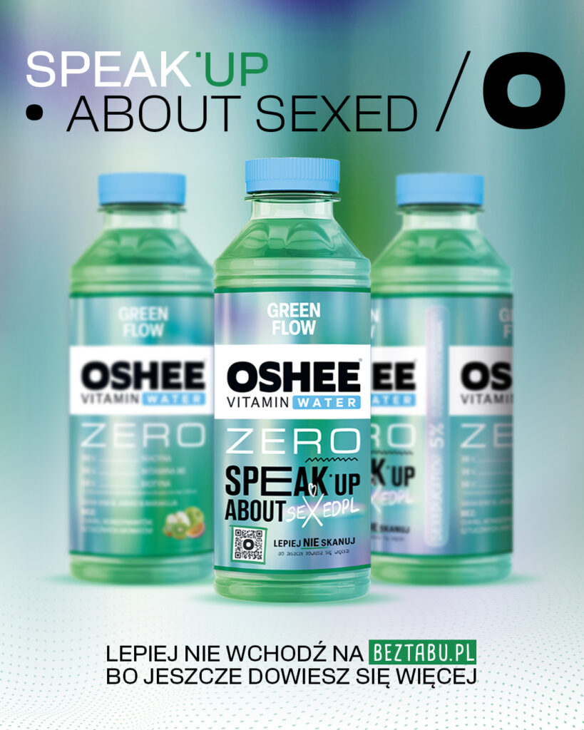 Marka OSHEE po raz kolejny łączy siły z SEXEDPL, by wspólnie działać na rzecz młodzieży. Specjalnie na potrzeby projektu wprowadziliśmy nową edycję napoju OSHEE Green Flow, którego etykieta zawiera kod QR prowadzący bezpośrednio na stronę BEZTABU. Dzięki temu młode osoby mogą łatwo i bezpiecznie dotrzeć do wartościowych treści.